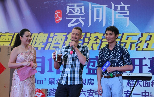 活动现场,近百张桌椅座无虚席,有龙虾、田螺、花生等美食,德国黑啤供你畅饮,还有美籍帅哥乔治和著名乐队为你精彩演出,惊喜不断,更有激动人心的抽奖环节。