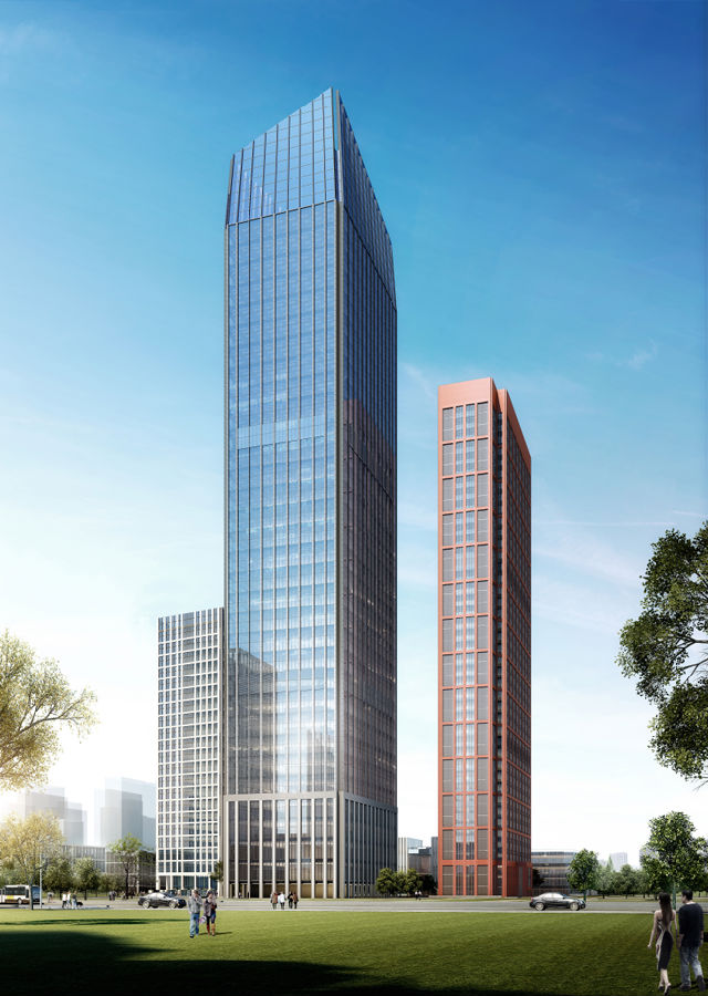 项目占地面积44亩,采用山字形生态设计理念,规划设计共3栋高层和两栋多层,其中1#为项目的超高层写字楼,2#楼为商办公寓,3#及4#为文一总部绿色办公区域,5#规划为文一集团员工宿舍。2#楼110米的商办公寓,市政冷暖双供系统,共22层,规划的产品为4.2米挑高LOFT,主力户型在40—115㎡之间,整体采用南北双向布局。