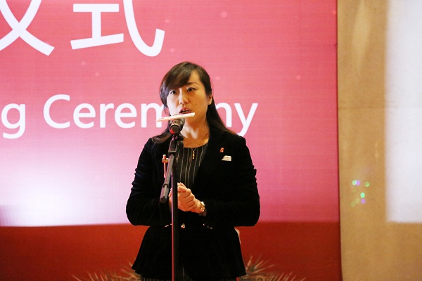 在现场浓郁圣诞氛围中,安徽文一戴斯大饭店总经理孙庆莉女士致辞: