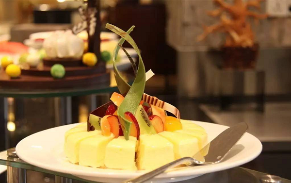 客人及厨师长对现场制作的甜品进行评估,参与者第一名获赠酒店自助餐劵2张,第二名获赠自助餐劵1张.