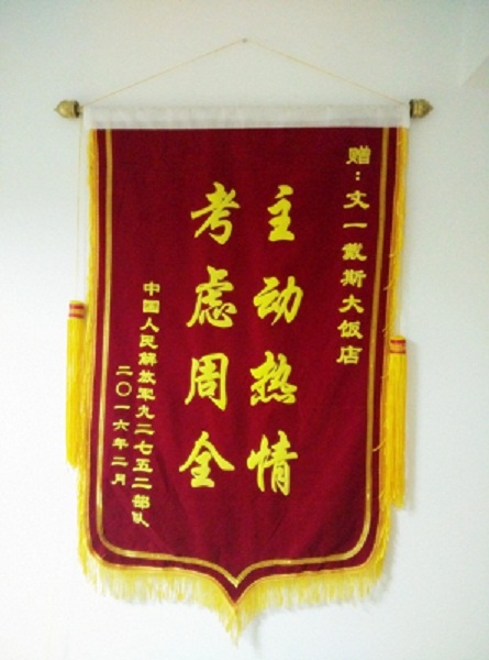 此次接待海政歌舞团慰问演出,不仅环境和美食得到了一致认可,各个环节的细心服务为此次接待任务更是锦上添花,同时也是对酒店VIP服务流程、环节以及各部沟通、衔接的一个检验。客房部安排了经验丰富的金牌服务员一对一全程服务,餐饮部依据贵宾喜好定制了美食菜单和欢迎礼物,厨师们在餐点上也下足功夫,力求将美食做到色香味型俱佳。在用餐期间,吕继宏副团长亲笔写下:我希望在酒店入住期间,安排餐饮部中餐经理作为我的服务管家。另外,鉴于部队的保密性质,酒店在安保上也投入了极大的精力,部队领导入住楼层都有安保人员把守,酒店监控系统24小时专人看守……有感于酒店的细致安排与周到服务,在春节后九二七五二部队特地送来锦旗以示谢意,也是对安徽文一戴斯大饭店的综合接待能力充分给予肯定。