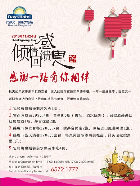 “文悦轩”中餐厅感恩节特惠:(见附件-中餐厅感恩节)