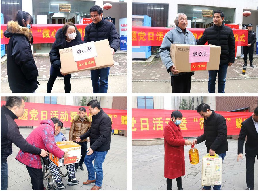 为进一步加强企业党组织与社区居民的联系,凝聚社区党组织力量,发挥好联创共建作用,为困难群众送去党的温暖和企业的关怀,文一集团党委主动认领了龙岗开发区罗岗社区12户困难居民的“微心愿”。12月10日,文一集团党委副书记、副总裁沙先知带领文一物业党支部部分党员,协同罗岗社区工作人员,赴文一·静安瑞泰和名门名城小区开展主题党日活动暨“微心愿”赠送活动,现场为困难群众送上他们的微心愿礼物。
