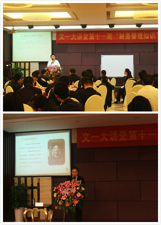 为进一步提升企业管理人员的财务知识水平,提供经营指标分析能力,2015年11月15日,文一大讲堂第十一期“财务管理知识”课程在铜陵路一品宴酒店6楼开课,本次主讲的老师为中国科技大学管理学院副教授许立新,来自集团的200多位中高层和财务相关人员参加了本次培训。