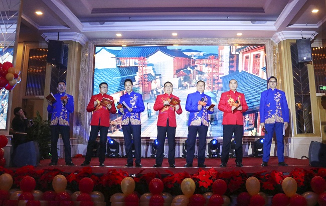 “歌声袅袅辞旧岁,舞姿翩翩迎新春;大地同欢春色好,万条绿绦迎新年”,在这辞旧迎新的喜庆日子里,文一集团滨江置业有限公司于2018年1月31日晚在文一·白马山国家篮球公园举办了“津门有悦 再续芳华”为主题的新春联欢晚会。文一投资控股集团董事长周文育,控股集团副董事长、房地产集团总裁韦勇,房地产集团副总裁夏明军,控股集团副总裁薛英姿,房地产集团副总裁李明传、房地产集团副董事长、副总裁沙先知等一行与滨江置业公司全体同仁、合作单位共享喜悦盛典,“悦”定过往,相约“津”生,再续津门芳华!