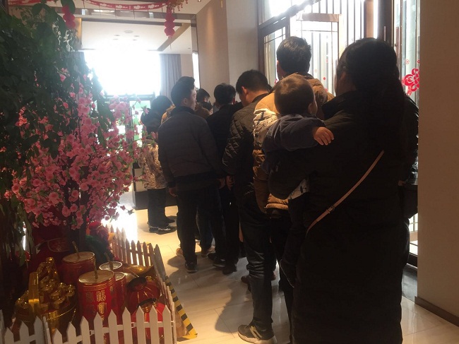 开盘当天,签到区域早早就排起了长队,爆棚人气可见一斑。现场人头攒动,却又井然有序地翘首以待,足见文一准业主们的高素质修养。