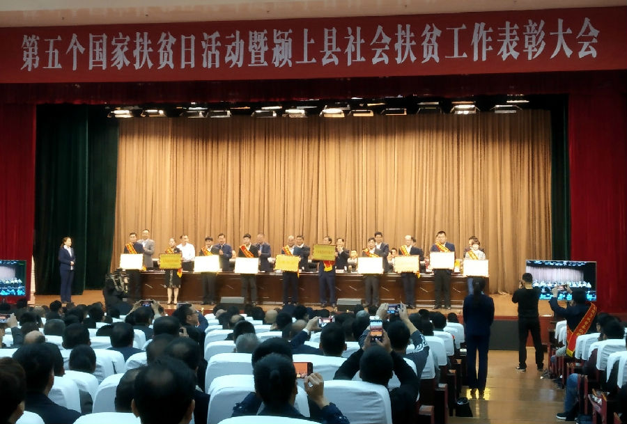 10月19日,第五个国家扶贫日活动暨颍上县社会扶贫工作表彰大会在县群众剧院盛大举行。会上,颍上县委县政府对社会扶贫各先进单位、先进个人进行表彰总结,颍上文一地产荣获全县脱贫攻坚奉献奖。