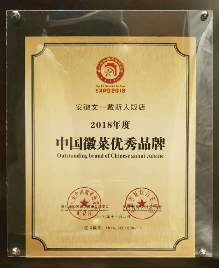 11月8日,由中国饭店协会和安徽省餐饮行业协会共同举办的第八届中国徽菜博览会在丰大国际酒店盛大举行。文一酒店集团凭借超强实力,花开并蒂,所属两店荣获“国家五钻级酒家”荣誉称号。