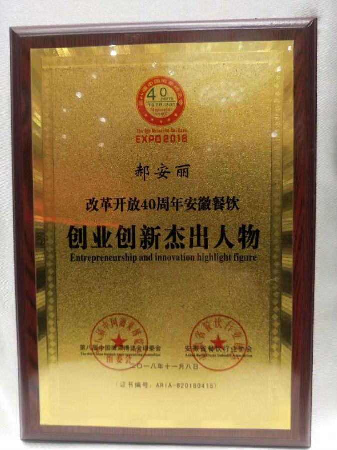 除“国家五钻级酒家”外,本届“徽博会”上,文一酒店集团还有其他奖项收入囊中。文一戴斯大饭店荣获“2018中国徽菜优秀品牌”奖,一品宴铜陵路店另获“安徽美好酒店餐馆”奖,文一酒店集团郝安丽荣获“改革开放四十周年安徽餐饮创业创新杰出人物”奖。