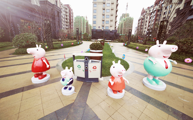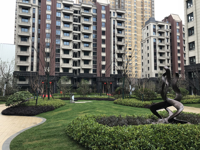 项目定位低密度洋房社区,法式外立面造型、干挂石材加真石漆材质、超大楼间距、多层次大面积绿化、磨砂加宽路面地砖、入户大堂合金边框等彰显尊贵典雅。