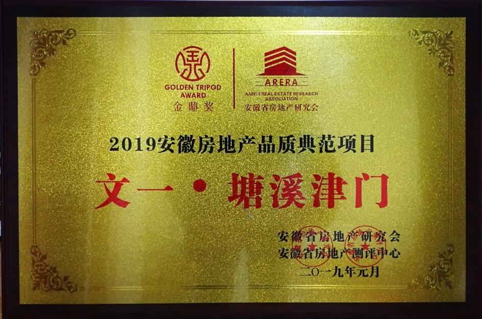 (文一·塘溪津门获评2019安徽房地产品质典范楼盘)