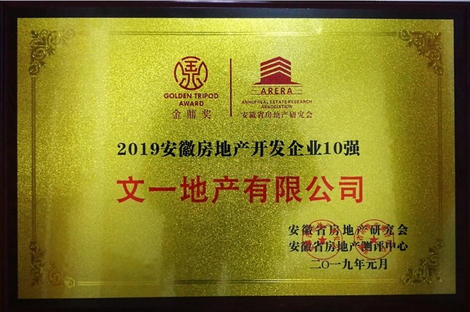 (文一地产荣登2019安徽房地产开发企业10强首位)