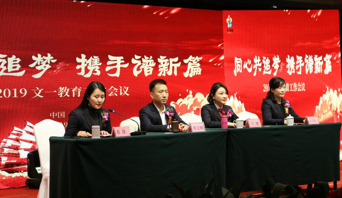 同心共追梦,携手谱新篇,2月18日,文一教育2019年度工作会议在安徽文一戴斯大饭店盛大举行。文一集团副总裁周文锁,文一教育总经理王健,副总经理邓萍,见习助理王义红及各分园园长出席此次会议。