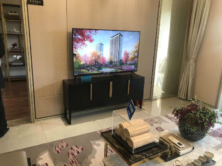 阔绰尺度,尊享生活礼遇,舒城文一·锦门桃溪里样板间宽厅奢阔敞亮,显露“城市会客厅”尊荣,亦是主人胸襟的豁达外放。样板房增设电视及音响,给人归家的即景感官。