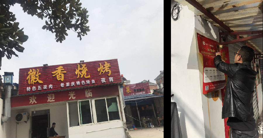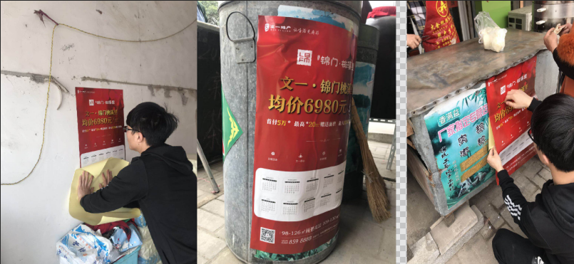 汇总县城各街道的饭店、小吃摊并进行拓客铺排,陆续张贴项目宣传海报,并宣传发展全民经纪人。