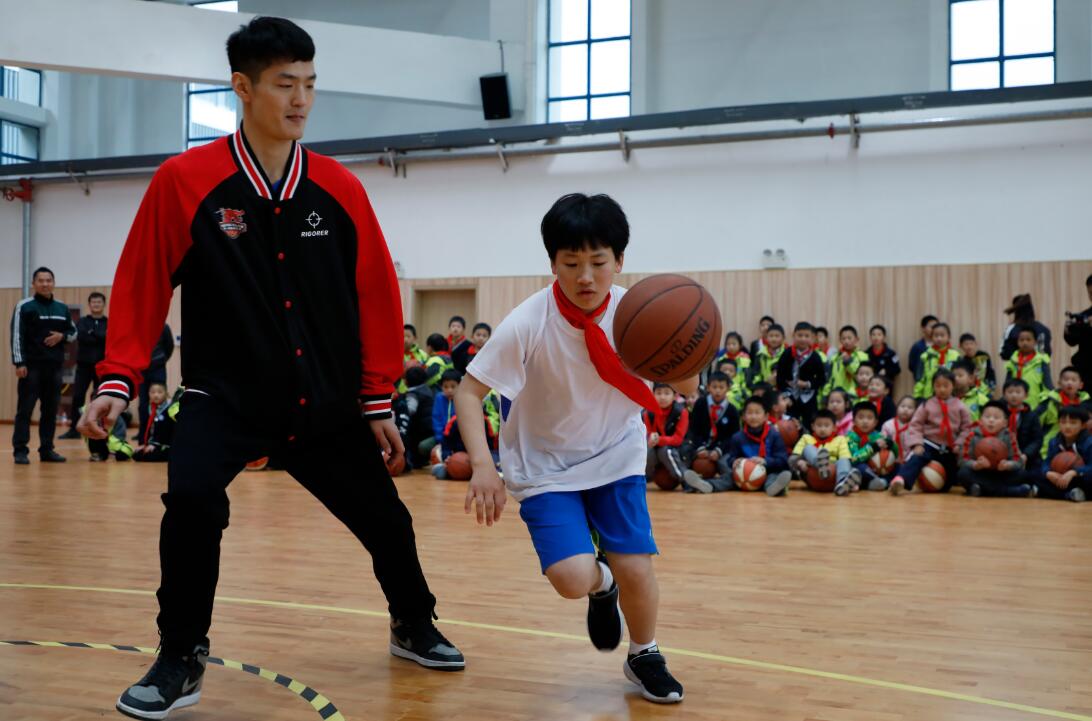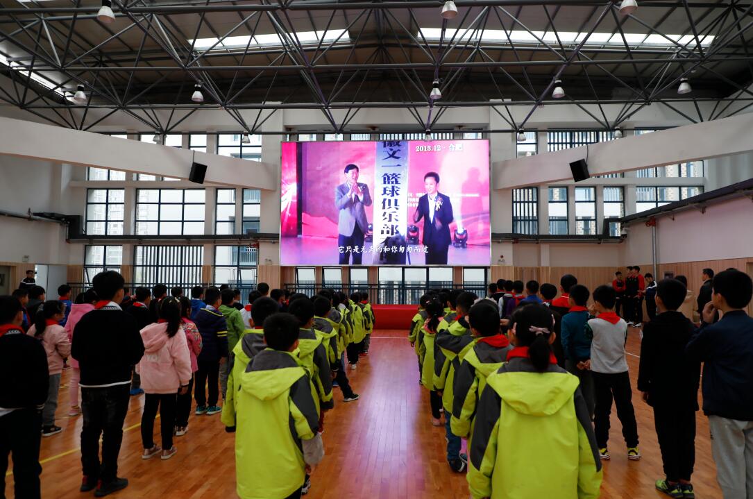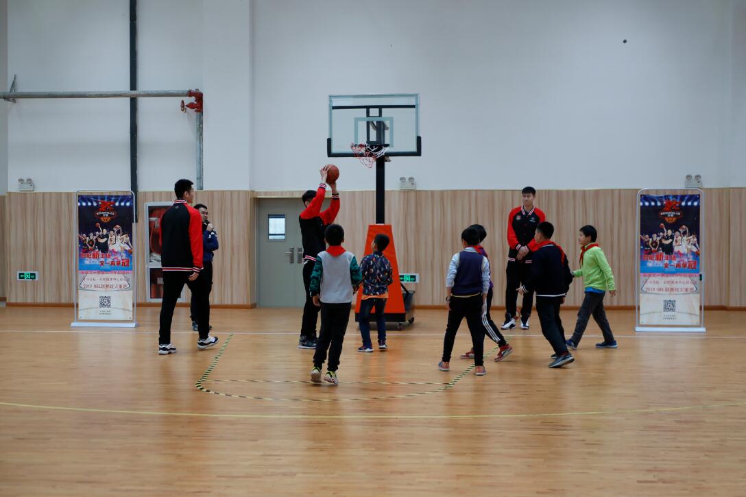 高大帅气的球星来到球场后,学生们立刻簇拥而上,第一次见到职业篮球队员非常兴奋。牛保平以一记漂亮的拉杆背扣拉开了序幕,一名一年级学生自告奋勇登台,在牛保平的帮助下完成了他人生中的第一次扣篮。司职后卫周笑则带领全场学生进行了运球的教学训练,虽然孩子们年龄很小,但是十分认真,全场气氛十分热烈。