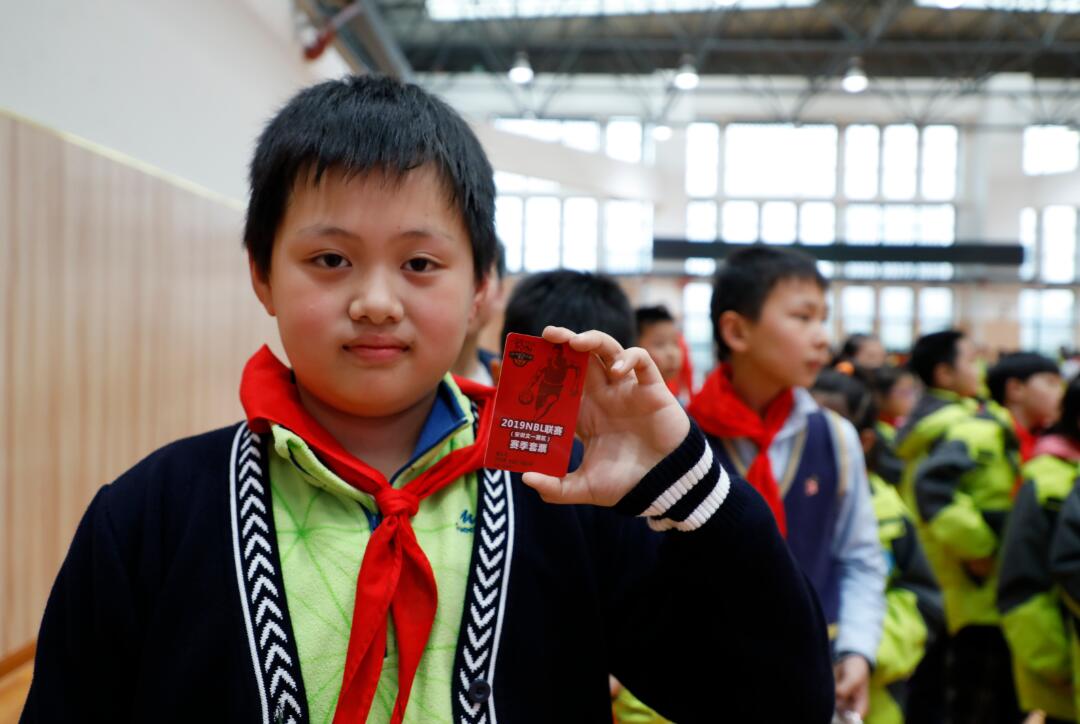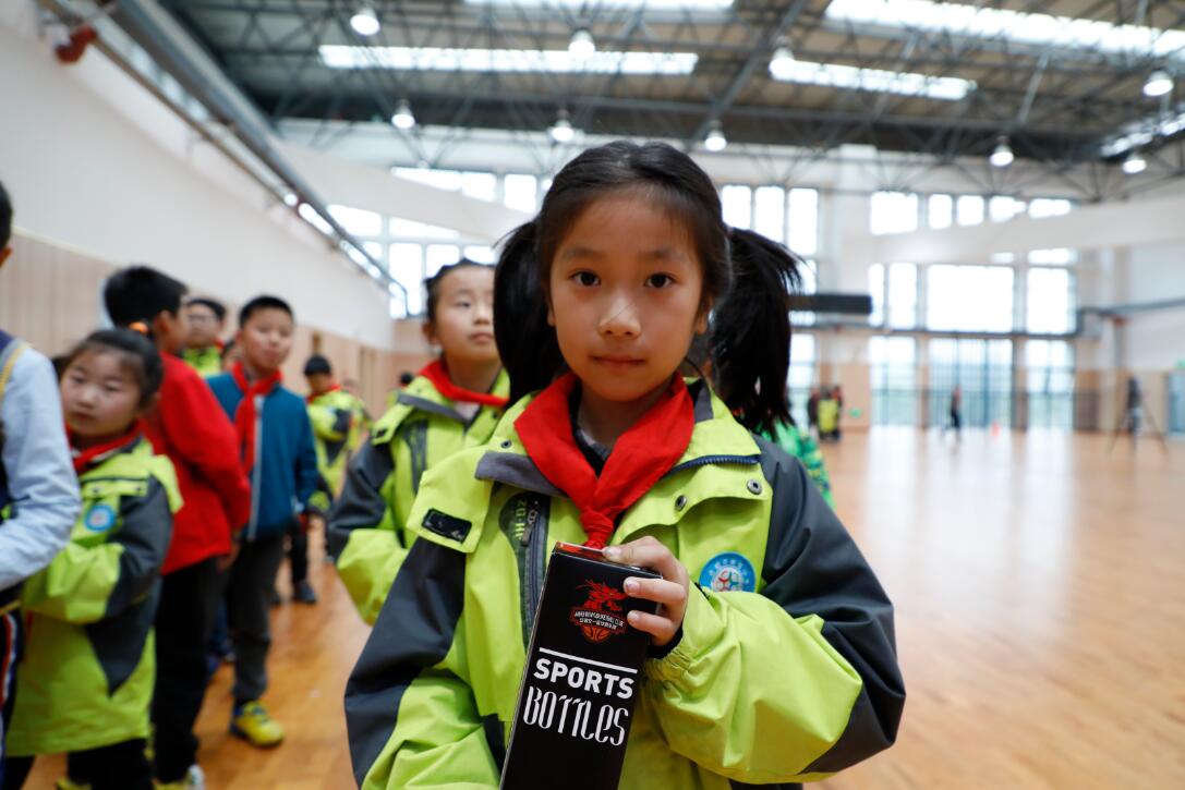 (学生获赠文一男篮纪念品)