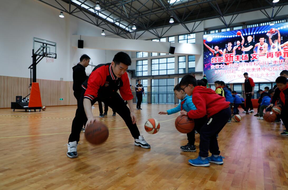 安徽文一男篮自建队以来,已经连续六年开展校园行系列活动。4月10日下午,安徽文一篮球俱乐部开启了2019年校园行活动的第一站——走进合肥奥体小学。安徽文一篮球俱乐部总经理兰家第带领内线大将李坚和后起之秀牛保平以及周笑参加当天的活动,受到现场师生的热烈欢迎。