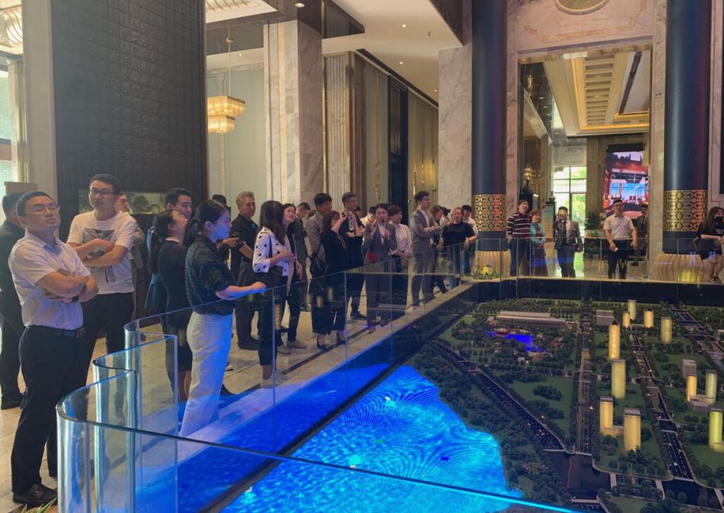 据现场工作人员介绍,文一·塘溪津门业态多元,产品包括“澳门老街风情商业、艺术家村落、五星级酒店、服务型酒店、滨水别墅、墅品洋房、高层宽宅”等。听取介绍后,嘉宾一行深感文一·塘溪津门千亩文旅始于砖瓦的匠心巨制,对项目未来建设前景表示看好。
