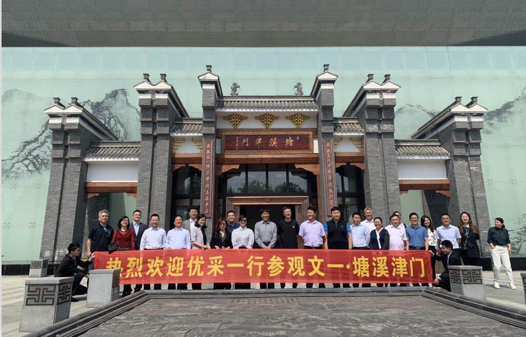 桃李相交,惠洽共赢,5月11日,中国房地产业协会副会长张力威、中国房地产采购平台副主任侯敬杰、中国房地产采购平台华东区域总监钟建平等领导一行莅临文一·塘溪津门参观调研,文一集团副总裁薛英姿等全程热情陪同。