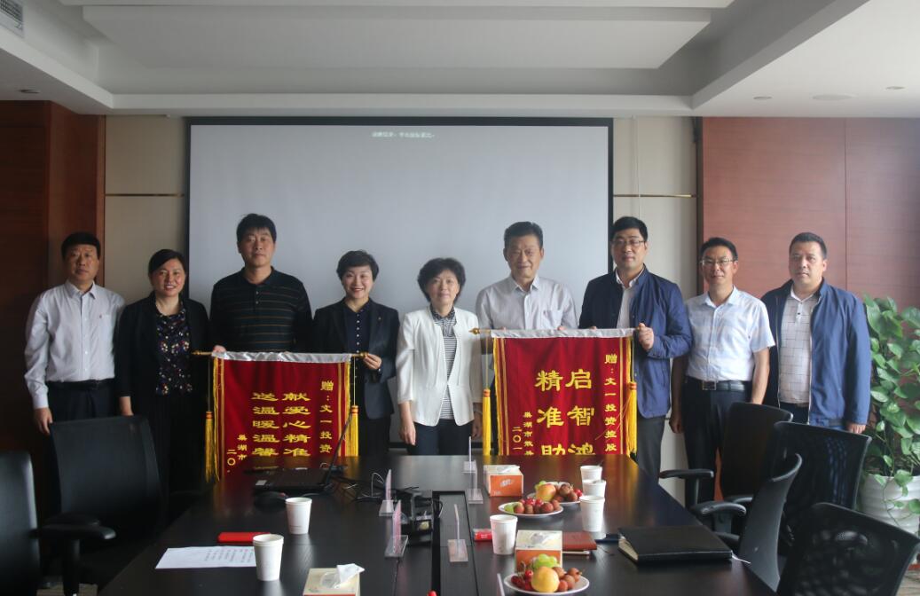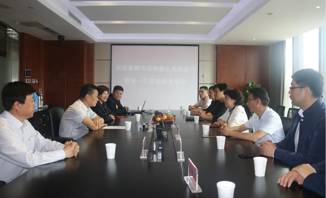 5月16日,巢湖市政协副主席、市工商联主席程素萍,巢湖市委统战部副部长、市工商联党组书记高昌春以及有关乡镇负责同志等一行莅临文一集团,就集团在巢湖市开展的扶贫工作表示感谢,并赠送锦旗。文一集团党委书记、纪委书记韦存华,集团副总裁、工会主席薛英姿及党群工作部领导等热情接待并陪同座谈。