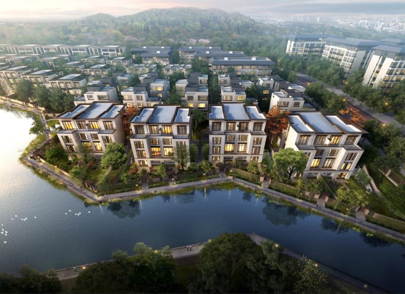交付区内部的园林以水流为灵感更别具匠心。纵观整个园区,既有河流穿流而过,也有潺潺水系环绕,内外水景规划,是合肥水系景观中的首创之举。万亩湖园环伺,曲水流觞、鲜氧输送,景的呼唤、水的轻吟,从簪缨世家到书香门第,皆享受园境庭深、岁月静好之意境。