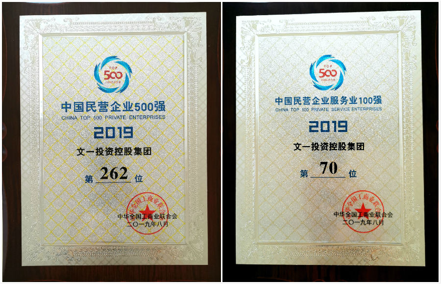 8月22日,2019中国民营企业500强峰会在青海省省会西宁市召开。会上,全国工商联发布了2019中国民营企业500强、制造业500强、服务业100强榜单及分析报告。其中,安徽2家企业入围2019中国民营企业500强。文一投资控股集团以318亿元营业收入排名榜单第262位,居上榜皖企之首,已连续五年上榜,且在中国民营企业服务业百强榜单中排名第70位,成唯一上榜皖企。