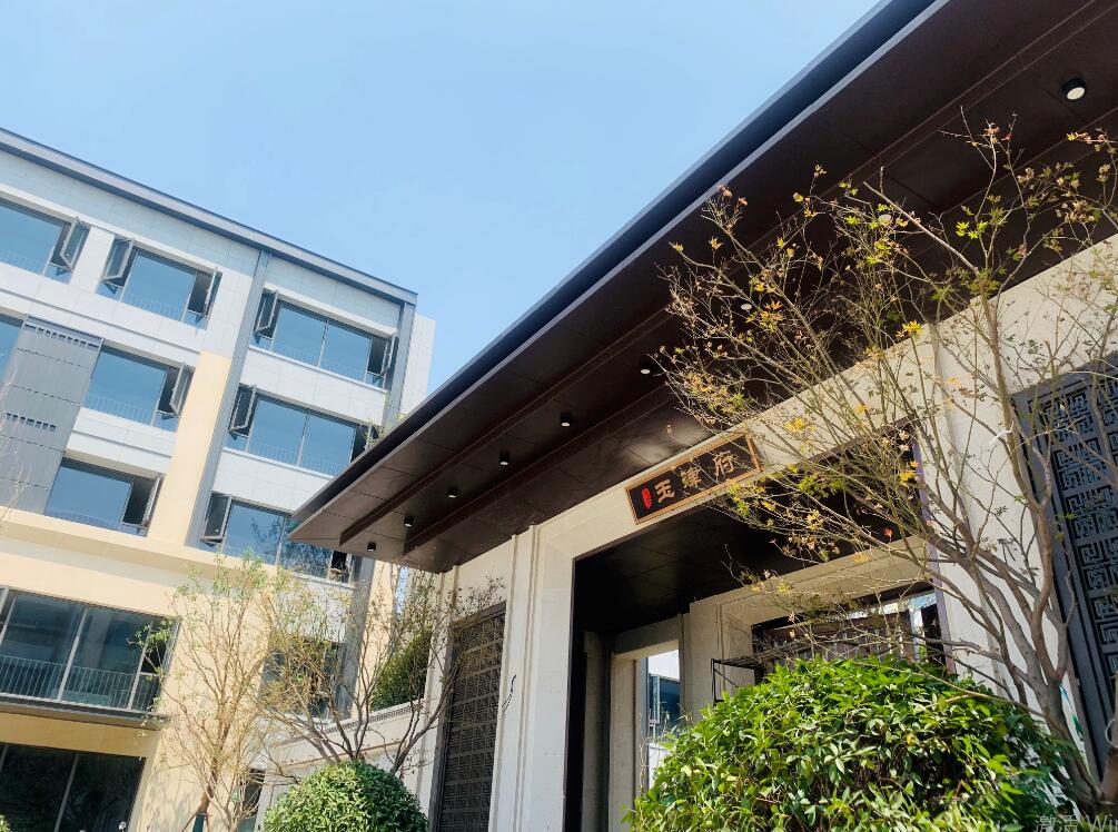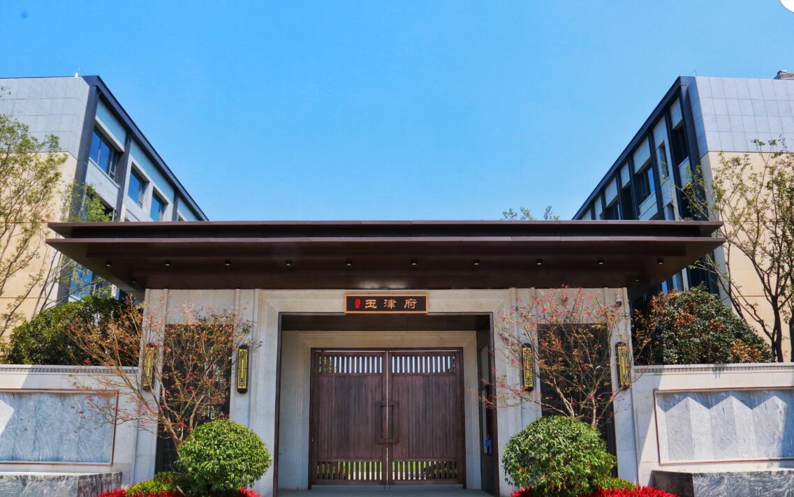 融合家族门第礼制,文一·塘溪津门首期住宅交付时便以世家气派征服庐州,再塑滨湖高宅门第非凡意象。而远观塘溪津门二期西入口府门——“玉津府”牌匾映入眼帘,约16米宽、约8米高的奢阔尺度,中式为古、现代审美,气派体面;古铜色铝板和黄锈石荔枝面,配以两侧名贵红枫和华美明灯,中轴对称式设计,将入府威严和大户尊崇风范不彰自显。
