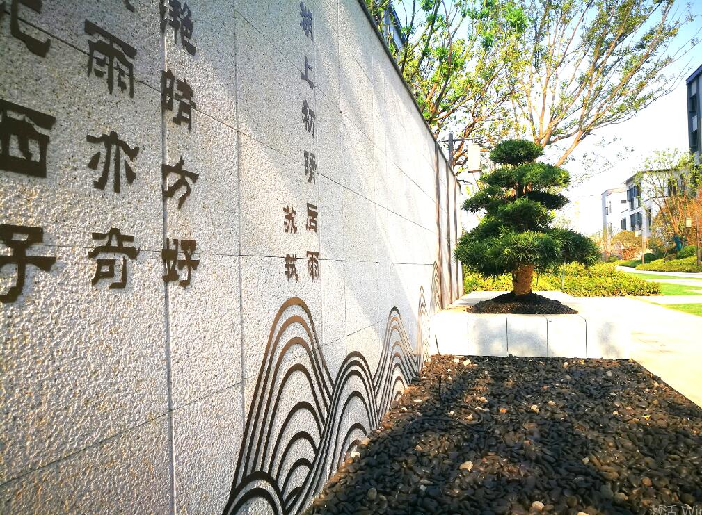 府门而入,乘风弥望,中央景观轴道豁然开朗,在绿意婀娜的园林意境缩影里,斑驳投影倾洒,让众多观赏者一见倾心。缓行至庭园之中,越过开阖石壁即见一座文化景墙:“水光潋滟晴方好,山色空蒙雨亦奇。欲把西湖比西子,淡妆浓抹总相宜。”一首苏轼的《饮湖上初晴后雨》题于其上;定睛御制名贵罗汉松盆景,将园中津门高端盛景规格再赋神韵,经典人文雅怀与游憩境域,与途径园路相得益彰。