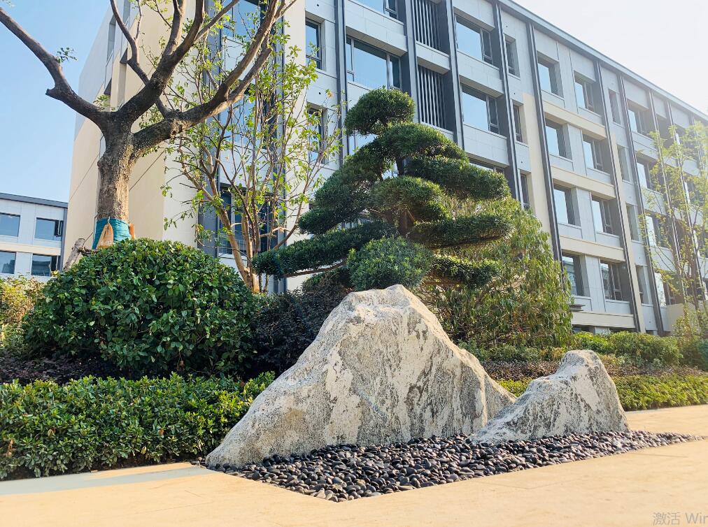 园区以石为古,以山为趣,以山石为主题,形成山林石趣,通过置石及地形的变化营造出点石成景、自然山水的园林艺术之美。