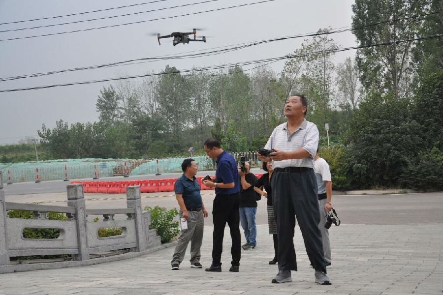 在工业园区,一位老摄影爱好者还升起了无人航拍,操纵着手中的手柄,记录下工业园区的美好景象。