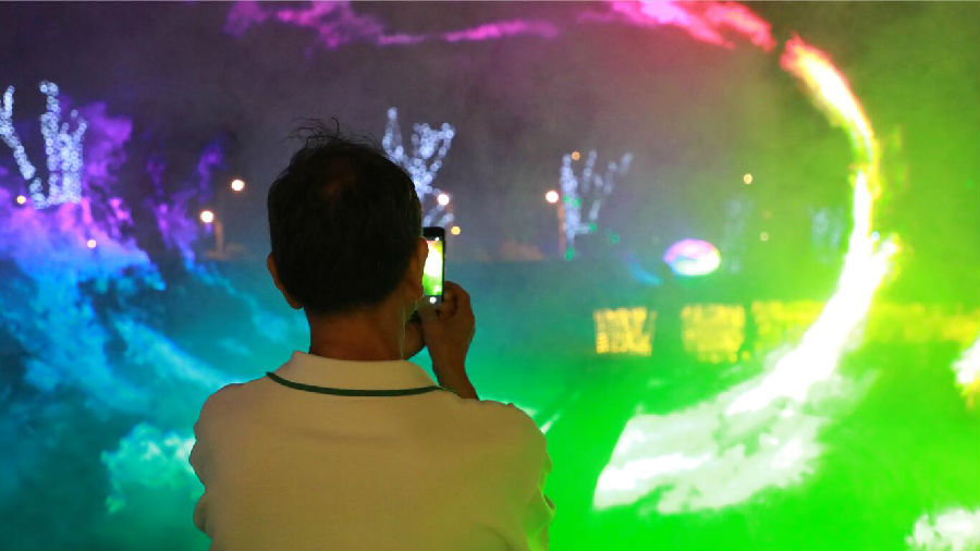 现场不仅有定制投影的炫酷效果,更将的高科技效果展现的淋漓尽致,融合现代科技感与时尚美感,深受年轻游客的喜爱!