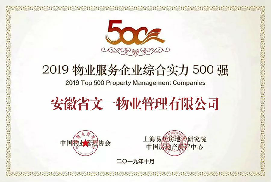 10月15日,2019中国国际物业管理产业博览会暨第五届中国物业管理创新发展论坛在深圳隆重开幕,中国物业管理协会在主论坛上发布“2019物业服务企业发展指数测评报告”。文一物业荣获“2019物业服务企业综合实力500强”称号。文一物业首次获得全国性物业服务企业排名称号,标志着文一物业向“布局全国”的宏伟愿景已经迈出实质性的第一步。