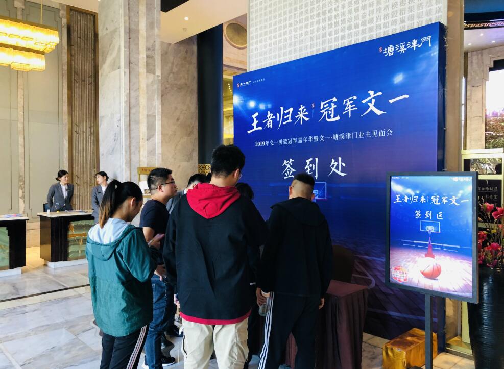 20日当天,文一男篮带着冠军荣光抵达文一·塘溪津门,为广大津门球迷们带来一场专属的篮球饕餮盛宴。见面会还未开始,活动现场已座无虚席,来宾们为零距离感受文一男篮冠军的“强大气场”与“王者风范”而翘首以待。