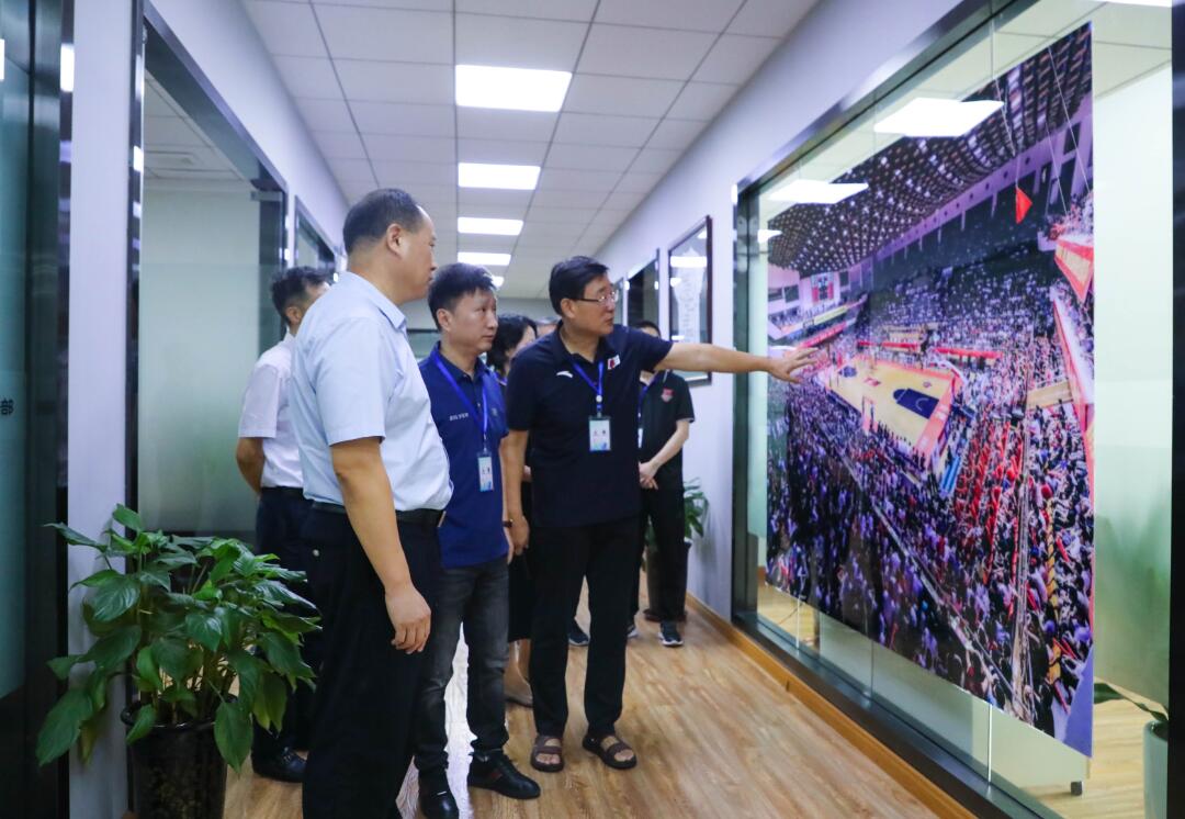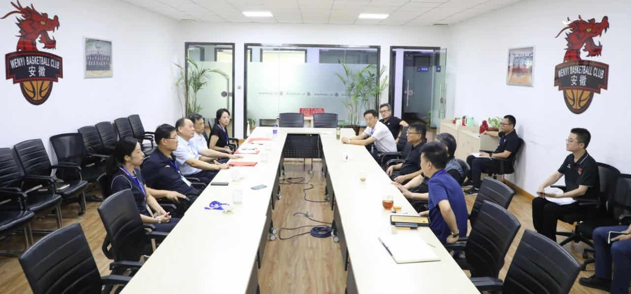 8月12日下午,安徽省体育局局长李军在省篮球协会主席陈海军,局办公室主任秦旭和青少处二级调研员刘弢陪同下,考察调研安徽文一篮球俱乐部,观看了正在文一男篮训练基地进行的安徽省青少年篮球锦标赛,并主持召开座谈会。文一集团董事长周文育,文一集团副总裁周文锁和安徽文一篮球俱乐部董事长宫鲁鸣陪同调研并参加了座谈会。