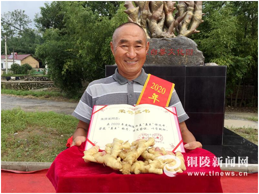 活动现场,义安区区长姚贵平为天门“姜王”颁奖。状若佛手、姜重1071克,这也是姜农朱贤发第二次荣获“姜王”称号。提及种姜心得,朱贤发开心地表示,如今他可是科学种姜,“今年我规模化种植铜陵白姜100亩,有省里的专家指导,铜陵白姜的品质、产量都有了保障提升。”