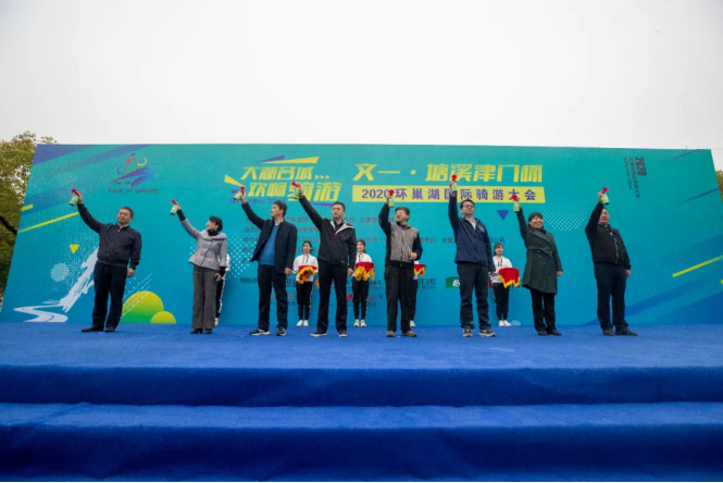 11月22日上午,“文一·塘溪津门杯”2020环巢湖国际骑游大会开幕仪式在巢湖岸畔盛大举行,来自全国各地近千名骑游爱好者齐聚巢湖之畔,共赴骑游运动盛会。