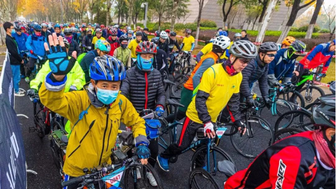 秋叶落,冬意浓,初冬的清晨天气寒冷,渡江战役纪念馆广场内,骑手们早已整装待发。中共合肥市委第六巡察组组长浦晓辉,中共合肥报业传媒集团党委书记、社长甄奎,合肥市体育局局长菅青,中共包河区委副书记、人民政府区长陈东,中共合肥市纪委监委驻市文旅局纪检监察组组长张慧,合肥市体育局党组成员、副局长陆志勇,包河区人民政府副区长宋琪,包河区教育体育局局长蒋永,文一房地产集团执行总裁夏明军等领导出席开幕式,共同为骑行活动鸣枪发令!随着发令枪响,2020环巢湖骑游大会正式启动,骑游大军踏上征途,向目标全速迈进。