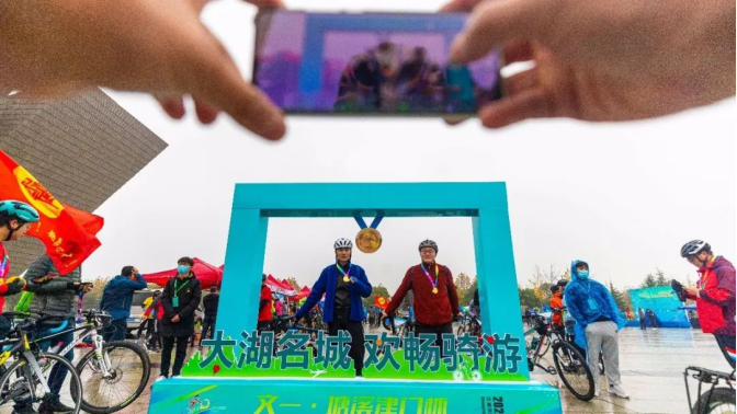 本次骑游盛会以渡江战役纪念馆南广场为起点,往西沿环湖大道骑行,至牛角大圩景区内绕行返回。返回时,沿环湖大道南侧观光车道骑行,至渡江战役纪念馆南广场胜利之塔(终点),全长约30公里。