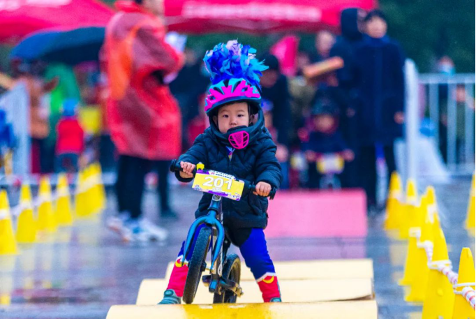 在趣味童车组赛程中,小选手们也不甘示弱,轻松自如地操控滑步车,通过一个个障碍物,自信地冲向终点,顺利完成骑行挑战。