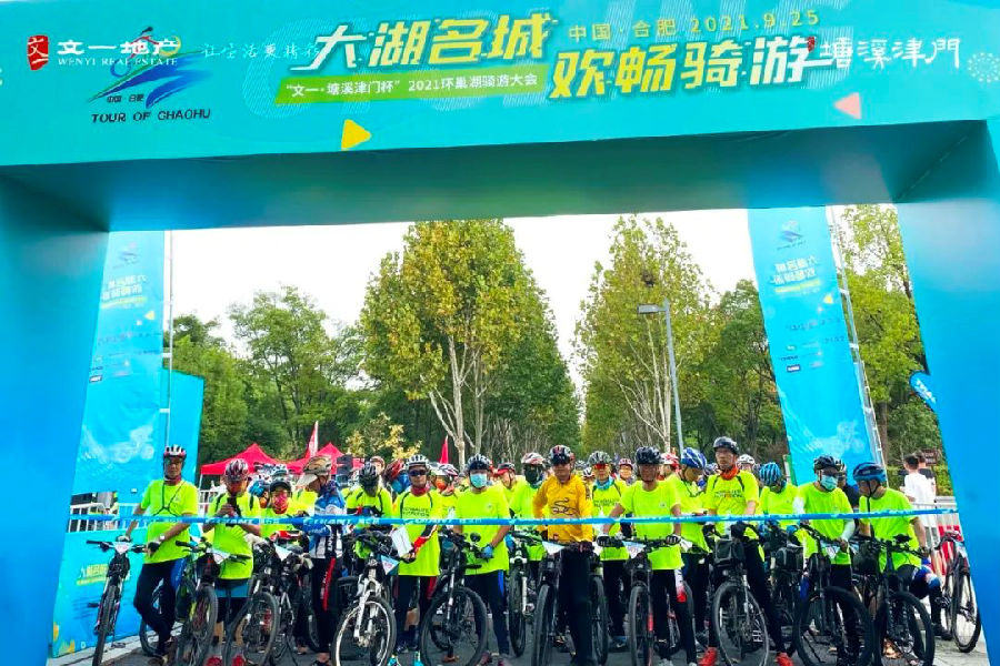 9月的巢湖烟波浩渺,骄阳未烈揽湖风入怀,千骑驰骋乘风驰行,共鉴骑游运动盛会。2021年9月25日上午,“文一·塘溪津门杯”2021环巢湖国际骑游大会在巍峨壮丽的渡江战役纪念馆前举行盛大开幕。