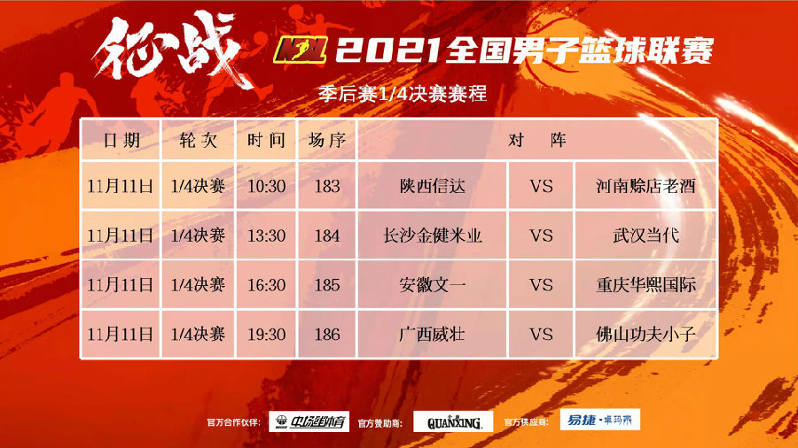 11月11日,季后赛将全面打响。前两轮比赛,依旧是残酷的单场淘汰制。安徽文一季后赛首轮将会对阵常规赛第七的重庆华熙国际。常规赛两次交锋,安徽文一双杀对手,因此战胜重庆,相信早已在安徽文一教练组计划之内。季后赛首轮另外三组对决分别是陕西对阵河南,广西迎战佛山,长沙大战武汉。