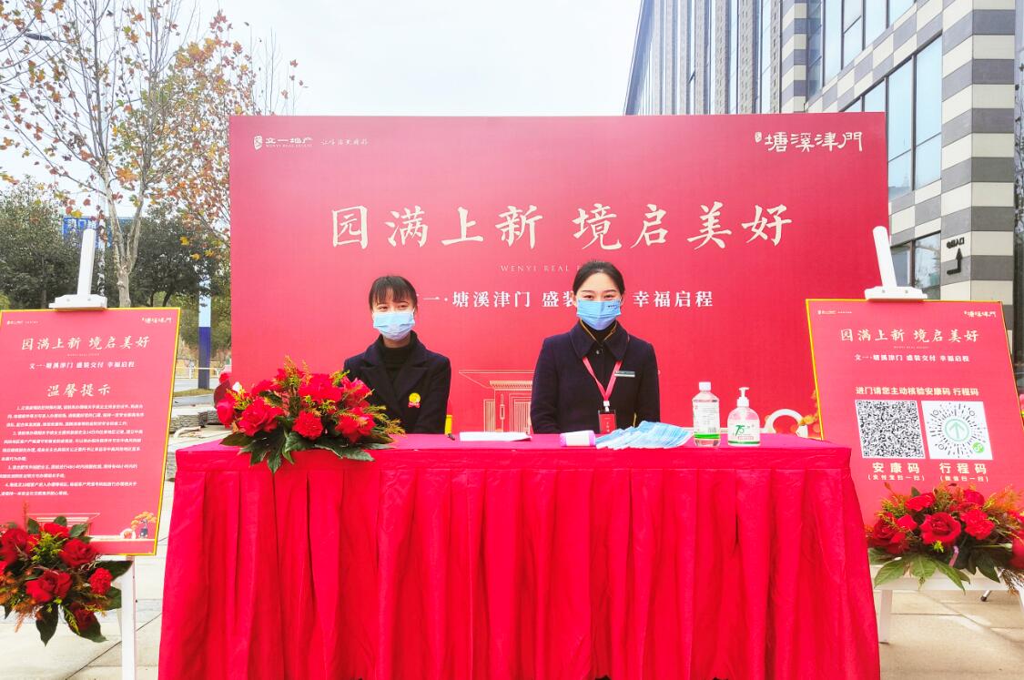 为了给业主们提供更完备的交付服务,文一·塘溪津门的工作人员们早早的各就各位,提前对翠微园&清弦园内进行严丝不苟的消毒,充分做足防疫防控工作,业主通过扫描安康码和体温检测有序进入园区。