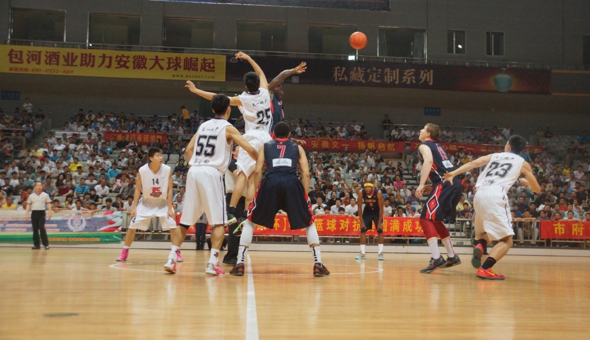 这支来自美国的球队主要是由美国NCAA大学生联赛的优秀球员组成的。在来到安徽之前,他们在太原赢了CBA联赛的山西队15分,实力可见一斑。在凤阳和文一进行的第一场比赛,他们也有惊无险的获胜。在这支美国球队的眼里,淮南的比赛不过是他们的又一场享受球迷欢呼的表演罢了。而上半场的比赛似乎的确是正按照他们的剧本进行。