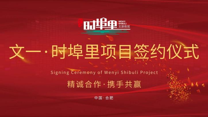 会议尾声,在现场与会人员的见证下,时埠里项目公司常务副总经理沈军和瑶海区国资公司党委委员、副总经理孙振宇正式签署《文一·时埠里文旅街区北岸租赁协议》。