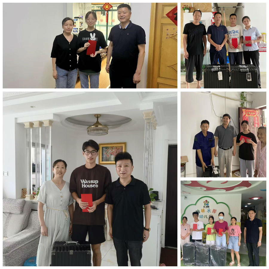 又是一年开学季,梦想腾飞正当时。8月24-25日,文一集团副董事长、常务副总裁周文,集团党委书记、副董事长韦勇等高管分别带队前往集团旗下各部门、单位基层职工家中,为即将赴高校深造的44名员工子女们送上慰问信、奖学金和行李箱等开学礼物,并向辛勤培育栋梁之材的职工们表达诚挚的祝贺与深切的关怀。