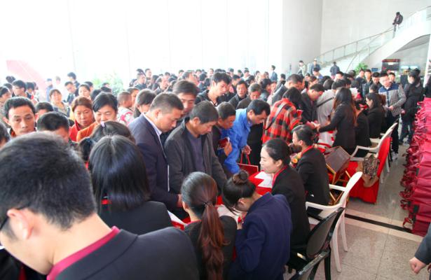 上午八点左右,载满客户的数十辆大巴车陆续到达安徽大剧院,签到处排满客户,有秩序的进行签到,并领取抽奖券和精美礼品。九点左右,场内已座无虚席。