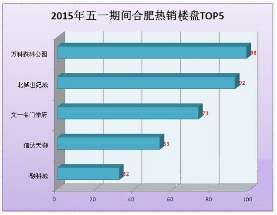4月底合肥楼市迎来回暖,单周开盘量连续三周突破10家。五一期间,合肥楼市住宅共备案569套,与2014年五一期间的328套销量相比,同比涨73.48%;住宅销售面积为59291平米,同比涨97%。在今年五一合肥楼市热销楼盘TOP5中排名文一名门学府排名第三,备案73套。