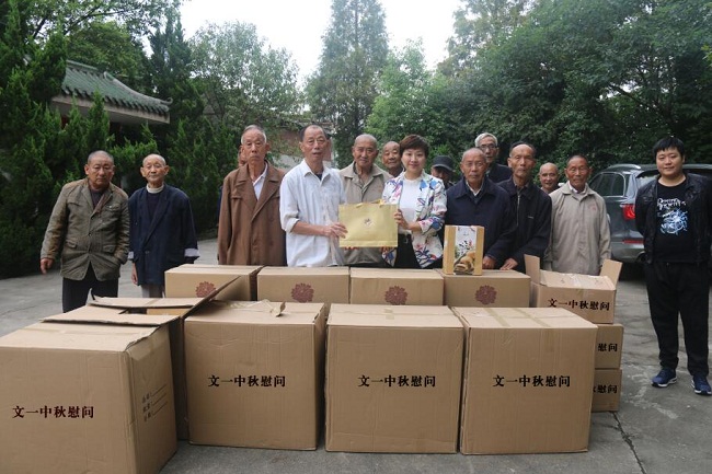 紧接着,文一集团又来到肥东县长临河镇敬老院,这里居住着116名老人,大部分都是60—80岁的孤寡老人。在节日到来之际,一份月饼代表一片爱心。文一集团工作人员热情地将116份月饼亲手送到老人们手上,并祝福老人身体健康,节日快乐。“中秋还没到,文一就给我们送月饼了,真的太感谢了。”老人们拿着月饼,喜上眉梢。
