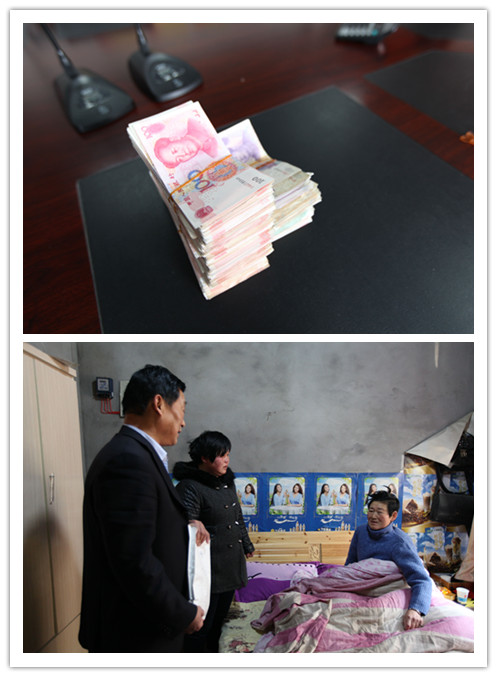 下午, 集团副董事长/党委书记韦存华、工会主席周文锁、工会副主席周建东携工作人员一起,将善款送到杨祥兰的家里。进到杨祥兰的家里,对她家的感觉真的可以用“一贫如洗”来形容。在瑞泰和园小区里租的毛坯房,家里的家具也是屈指可数。杨祥兰被病痛折磨的已经瘦骨嶙峋,看到我们进来,她努力挣扎着坐起来。当我们将募捐到的近七万元的善款交到杨祥兰的手上时,她感动的热泪盈眶。她说,“我实在是没有办法了,才去麻烦公司给我一点帮助,真的非常感谢大家,感谢文一集团。”